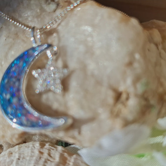 This delicate pendant in 925 sterling silver can hold ashes, hair, or fur of your loved one. It is customisable with crushed opals in various colors and styles. After ordering, you’ll receive a kit to send your inclusions. Finished pieces take just 3 to 7 days from reciept of ashes. . A free certificate of authentication is available—just provide the full name for personalisation. For custom themes or questions, feel free to contact us.